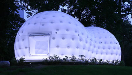 While this may look more like a golf-ball with a door, Japanese designer Kengo Kuma’s inflatable wonder is actually built on the traditional principles of a tea-house. When inflated (via a self-contained ventilation system), the inflatable tea house consists of an electric stove, a tokonoma niche, water kettle and preparation room, and LED lighting.